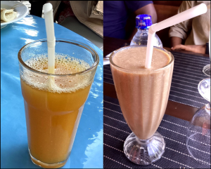 スリランカにおいて料理店で提供されたベル(左)とウッドアップル(右)のジュース (撮影:永野幸生/佐賀大学)