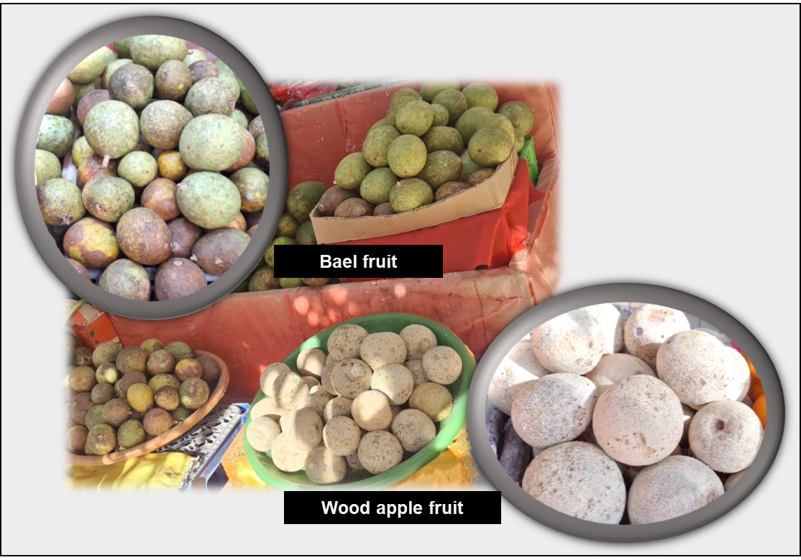 スリランカの市場で一般的に見られるウッドアップルおよびベルの果実 (撮影:Manoj Namal Sudusinghe 氏/スリランカのモラトゥワ大学卒業生)