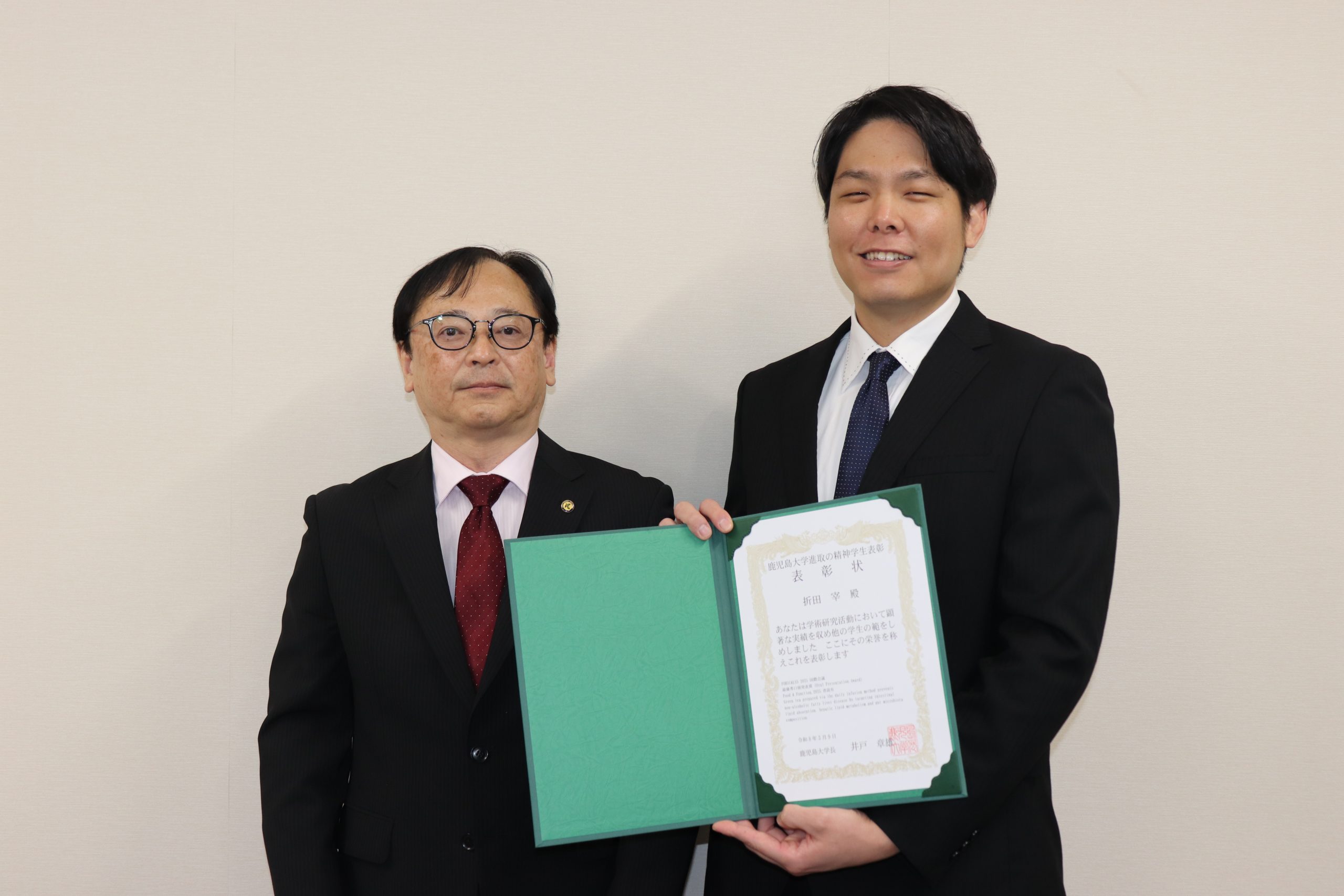 鹿児島大学(水)配属の古橋龍星さん及び鹿児島大学(農)配属の折田宰さんが表彰者として決定されたため、