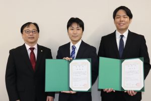 (左から北原研究科長、古橋龍星さん、折田宰さん)